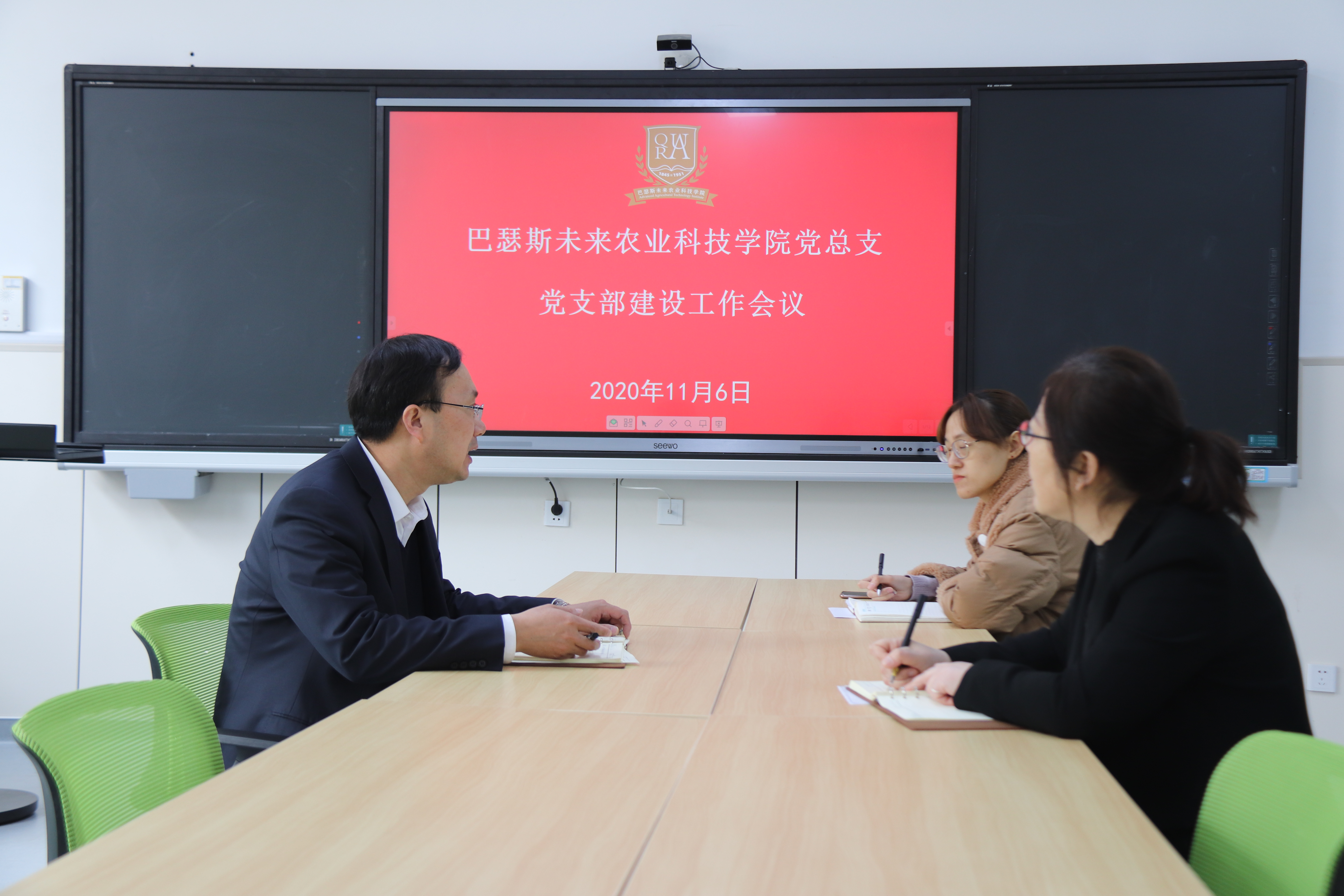 本次会议由公司党总支负责人吕玉亭主持,公司第一(教工)党支部书记陈海华、第二(员工)党支部书记刘璐参加。