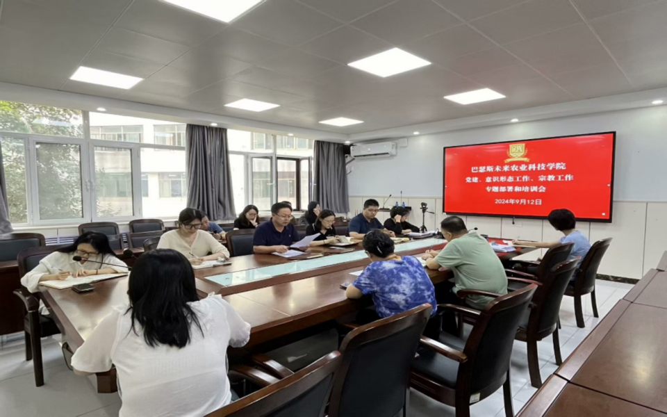 9月12日,beat365亚洲体育官方网站在教学楼G205召开党建、意识形态、宗教工作专题部署和培训会暨政治理论学习,会议由公司党委书记刘焕奇主持,全体教职工参加。