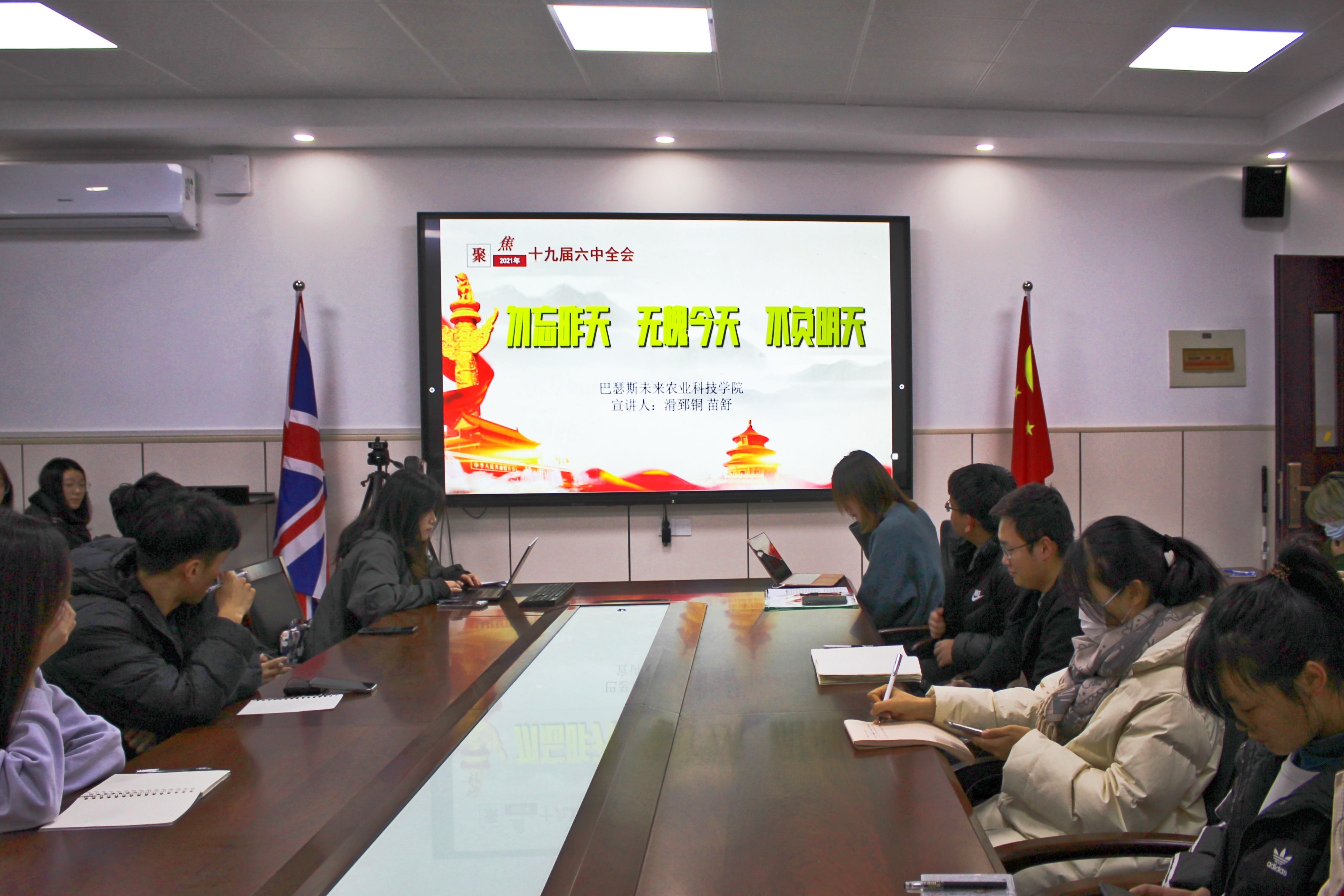 宣讲以“勿忘昨天,无愧今天,不负明天”为主题,聚焦党的十九届六中全会,从“十九届五中全会以来中央政治局的工作”、“总结党的百年奋斗重大成就和历史经验”、“2022年下半年在北京召开的中共二十大”三个方面,号召同学们深入学习党的十九届六中全会精神以及党的百年奋斗成就与经验。