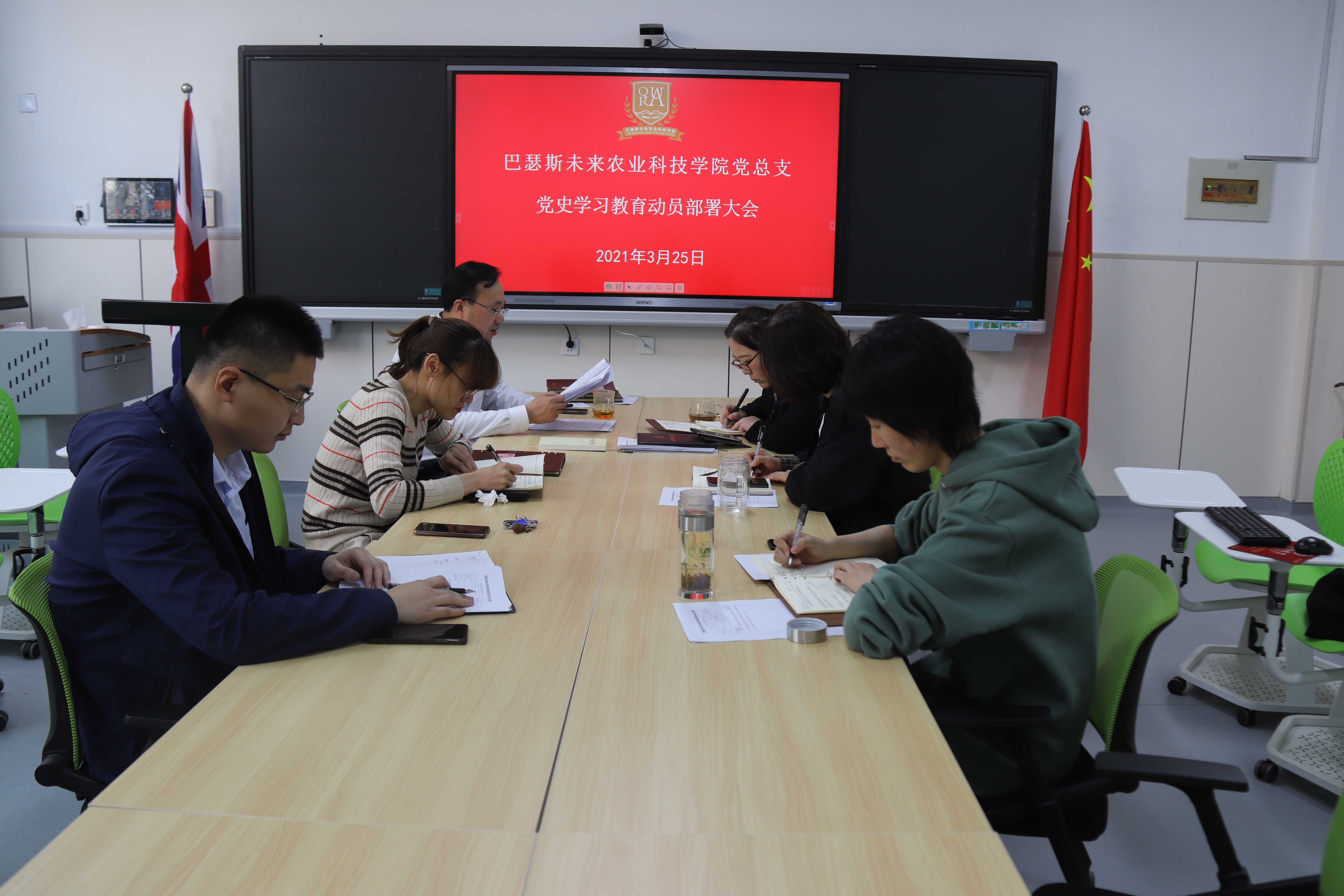 3月25日下午,beat365亚洲体育官方网站在教学楼F105召开党史学习教育动员部署会议,深入学习贯彻习近平总书记在党史学习教育动员大会上的重要讲话精神,传达中央决策部署和省委工作要求。会议由公司党总支负责人吕玉亭主持。