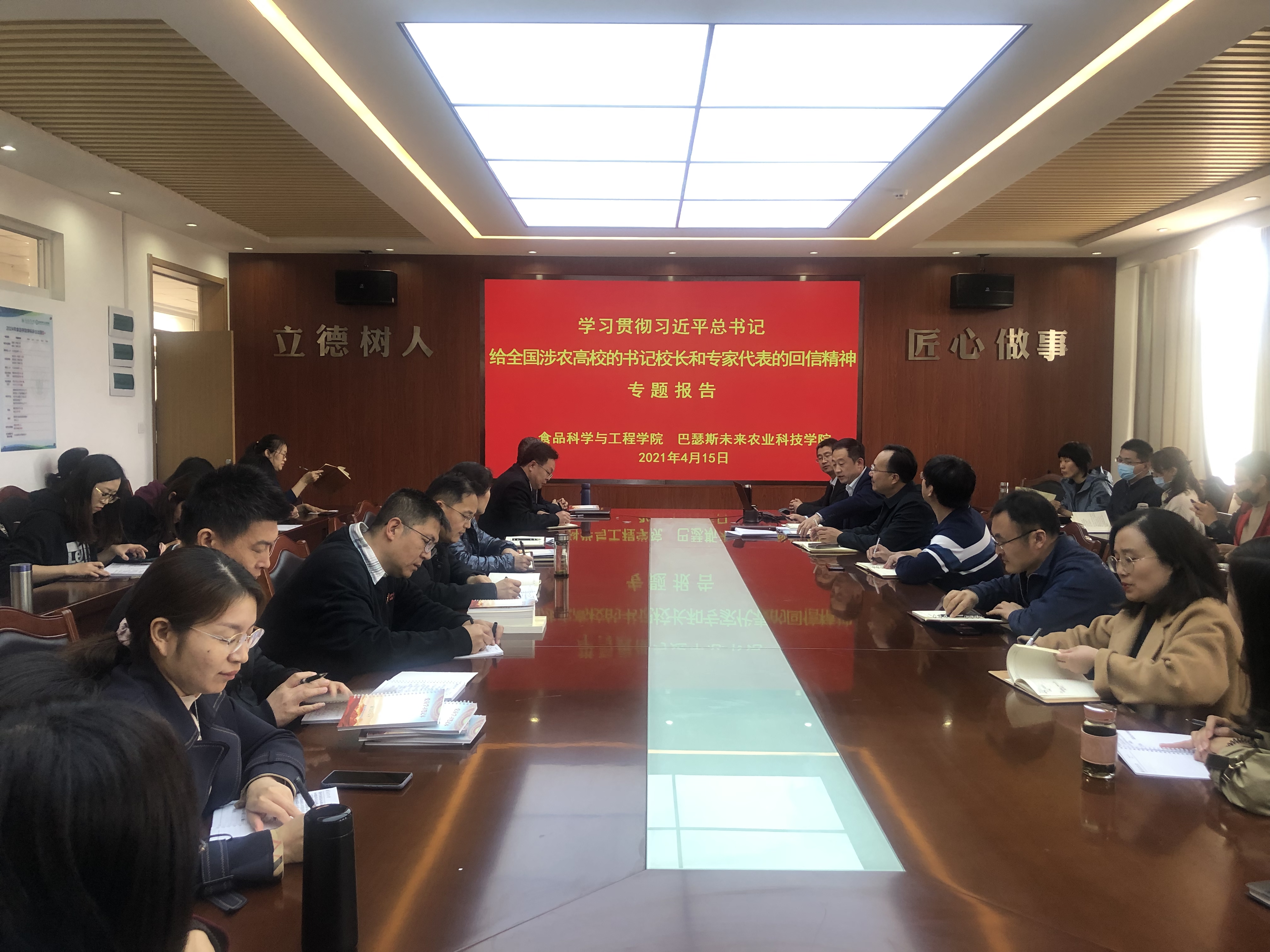 4月15日,beat365亚洲体育官方网站与食品科学与工程公司在食品楼会议室共同举办学习贯彻习近平总书记给全国涉农高校的书记董事长和专家代表的回信精神专题报告,邀请马克思主义公司副教授刘如飞担任主讲人。公司党总支负责人吕玉亭、常务副经理刘焕奇、副经理陈海华出席,公司全体教职工参加。