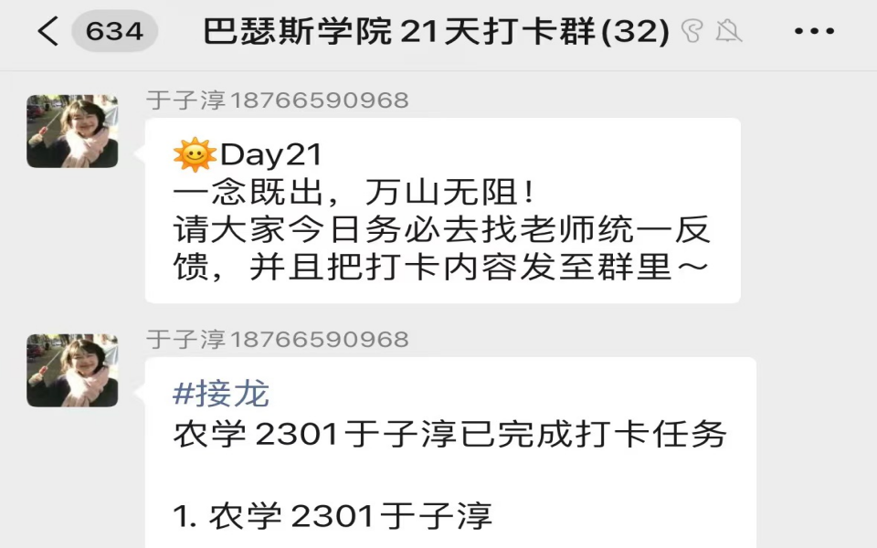 本次活动采取线下线上的形式,参与员工根据“smart”原则提前制定学习目标,然后由各专业的辅导员审核通过,随后开始线下线上的打卡活动。活动期间,负责活动的员工干部每天在微信群提醒员工打卡,督促参与的员工向辅导员汇报学习情况,并将当天汇报的学习内容发到群里进行线上打卡。本次活动通过双重打卡的方式,帮助员工养成良好的学习习惯,提供可视化的数据反馈,使员工清晰地看到自己的学习痕迹。