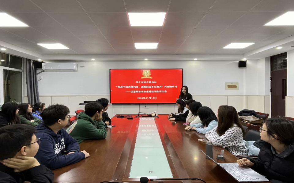 11月14日,beat365亚洲体育官方网站员工会临时团支部在教学楼G205开展“推进中国式现代化 加快推动乡村振兴”专题学习,会议由员工会主席团成员翟羽涵主持,员工会临时团支部全体成员参加。