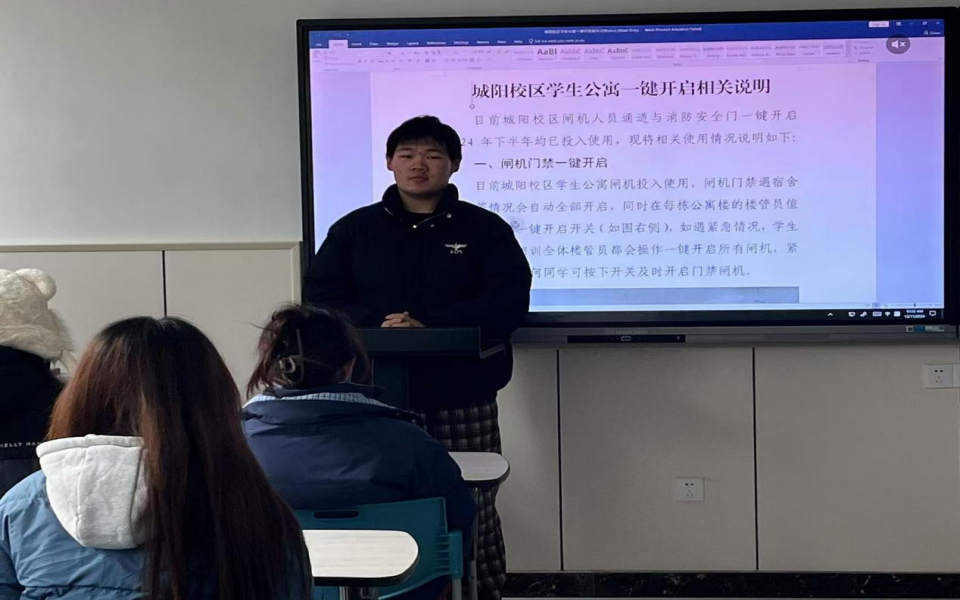 各班级在班长和团支书的带领下,进行了员工公寓消防安全、用电安全、财产安全、人身安全以及员工公寓管理规定等方面的安全教育,并认真了解员工公寓紧急逃生开关和对应大门的位置分布,做到人人懂,人人会,人人关键时候会开启。