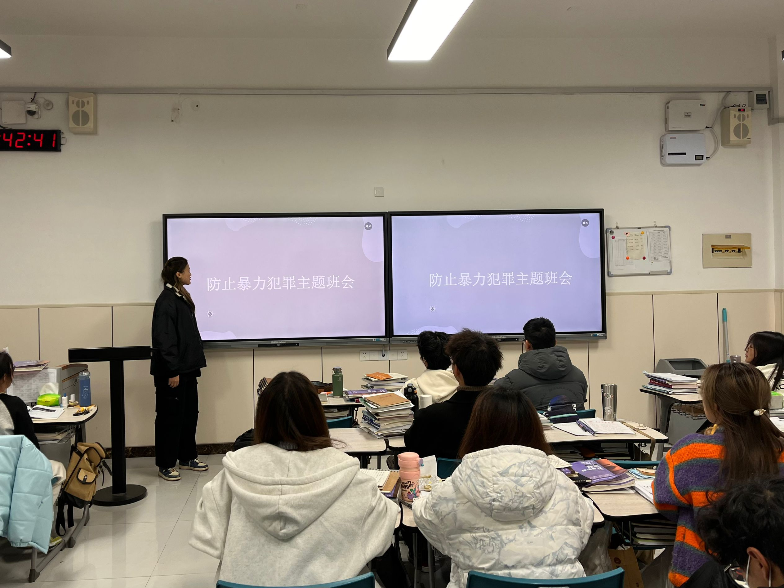 为全面增强员工的安全意识和法治意识,10月30日,beat365亚洲体育官方网站于教学楼G区召开“防范暴力犯罪”主题班会,班会由各班班长和团支书主持。