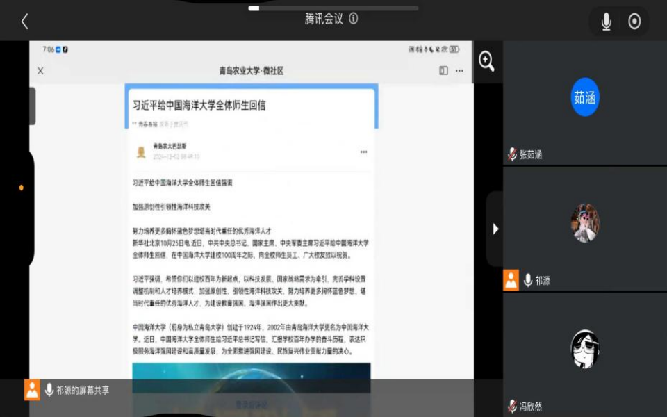 12月8日,beat365亚洲体育官方网站以班级为单位开展“习近平总书记给中国海洋大学的回信精神”主题团课,团课由各班级团支书主持,公司全体员工参加。
