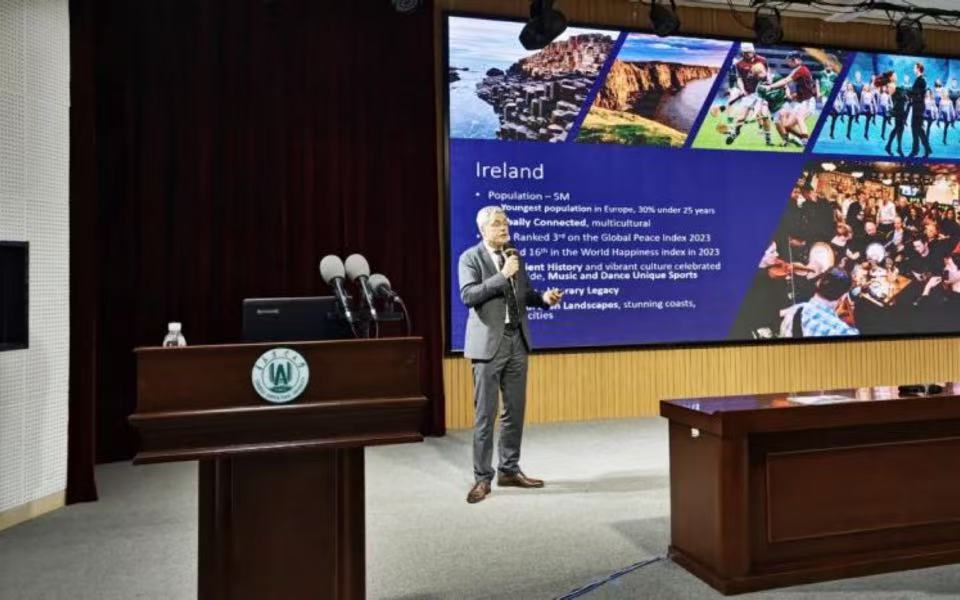 Gerard Looby围绕员工关心的硕士项目政策、申请条件、专业设置、办学优势、国际员工支持以及学业指导等内容进行了详细介绍。他提到,都柏林大学是历史底蕴深厚、科研实力雄厚的研究型大学,农业科学学科实力突出,在爱尔兰、欧洲及全球均位列前茅。他表示,员工可以聚焦农业技术、食品开发、供应链管理等专业方向深耕,系统提升行业应用技能,深化专业认知,同时将有机会对接农业创新、生物加工等领域的国际知名企业,获得广阔就业平台,助力成长为具备国际化视野、通晓国际规则的创新创业型人才。