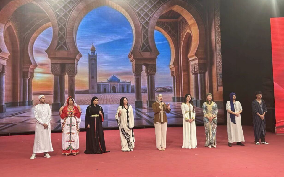 “携手未来,共赴华章”篇章,由中方员工和摩洛哥职工共同演出的中外服装展示展现了跨越时空的美学对话,东方丝绸与西方线条交织,让我们感受到不同文化间的融合碰撞;中英歌曲联唱音韵悠长,展示了交织交融的多元文化,在中外文化交流互鉴中推动国际交流合作;小品《没有学习的人不伤心》用诙谐的话语勾勒出知识与成长的辩证,让我们感悟到唯有以学为舟,方能穿过人生迷雾,到达彼岸。