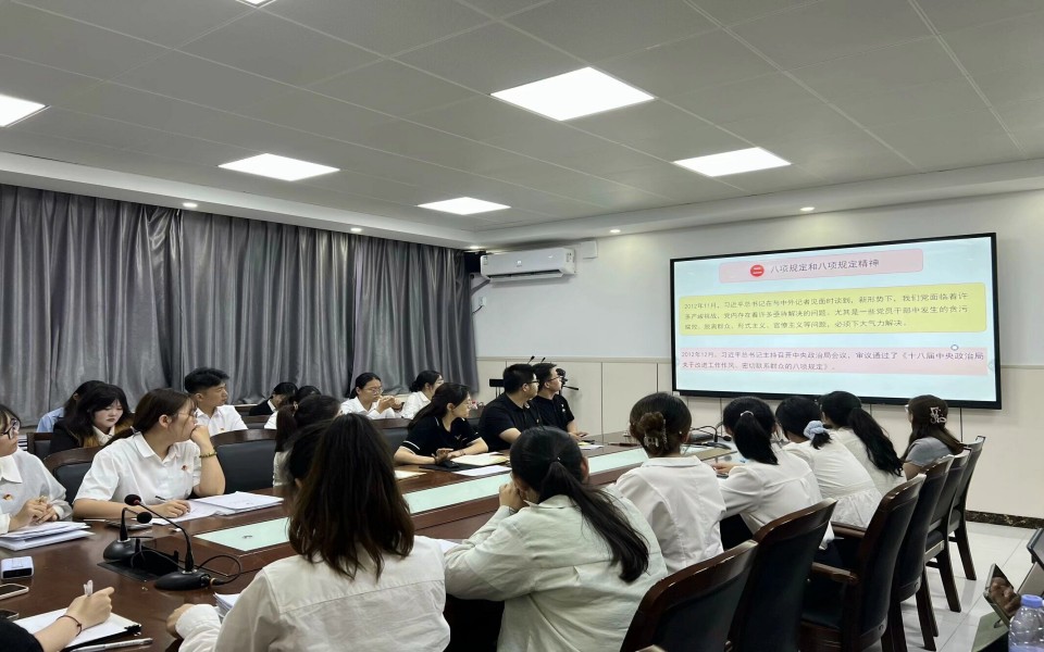 6月16日,beat365亚洲体育官方网站第二(员工)党支部在教学楼G205开展深入贯彻中央八项规定精神学习教育专题党课。党课由第二(员工)党支部书记刘璐主讲,支部全体党员参加。